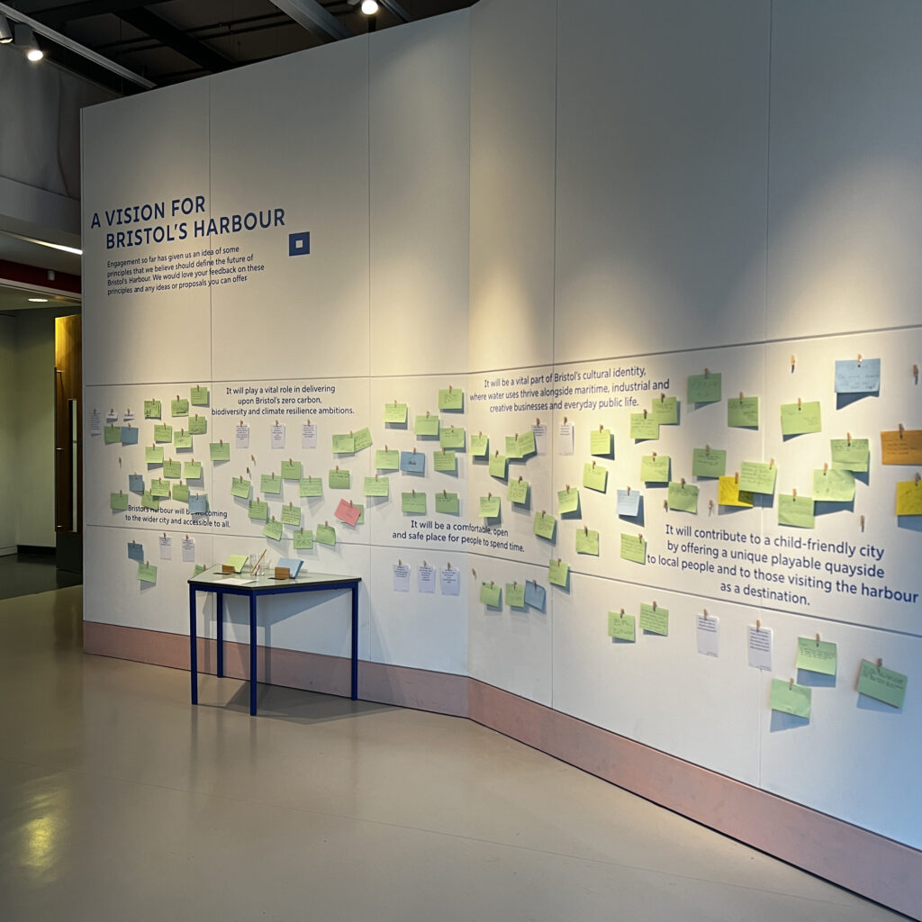 The project involved a lengthy, bespoke engagement process led by DK-CM; this incorporated a substantial interactive public exhibition at M Shed (in the space recently vacated by the toppled Colston statue), virtual events, in-person 1:1s and an innovative youth-creator -led programme giving the project access to the experiences and aspirations of diverse local young people.